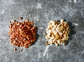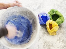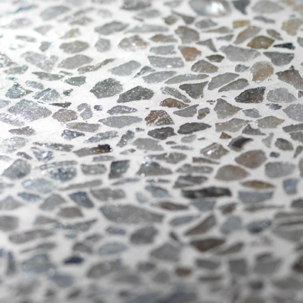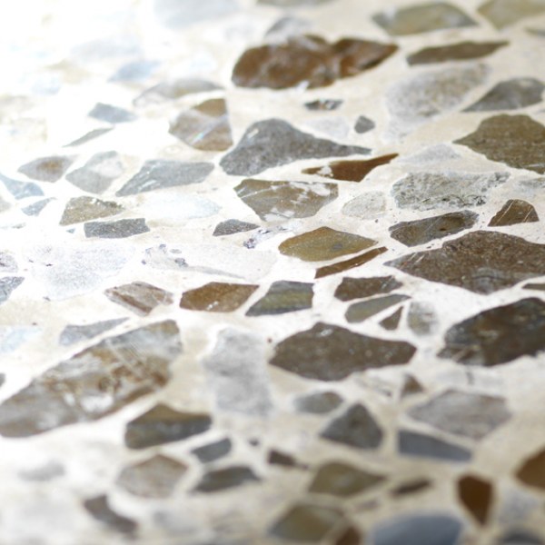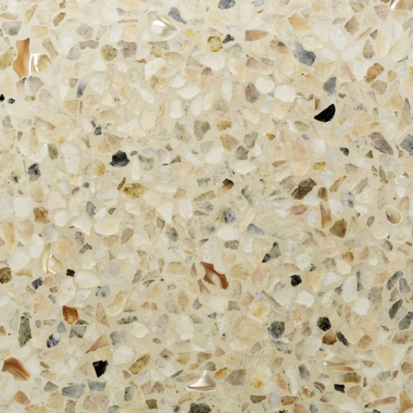 Marble chips of different sizes and colors are used.