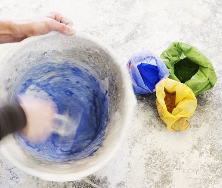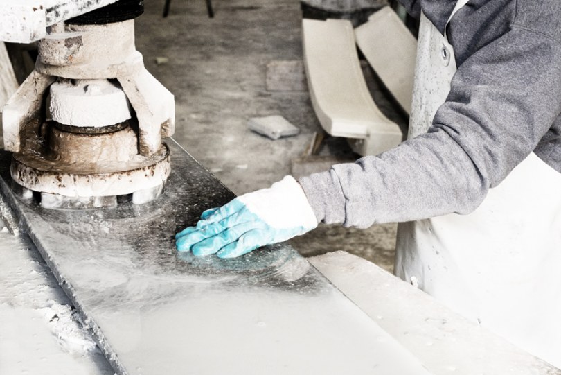 Each product is created by pouring a cement mixture into molds made of plaster,